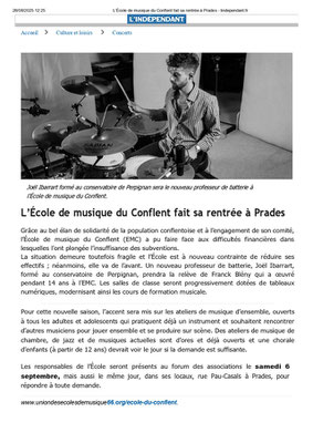 Après avoir écumé les planches de France et d’Europe avec différentes formations, le nouveau prof de batterie de l’école de musique du Conflent Joël se pose dans le département et oriente sa pratique professionnelle vers l'enseignement. Formé au conservatoire de Perpignan, ce jeune batteur à a cœur de partager sa passion en accompagnant les élèves à développer leur musicalité. A travers le travail du Time, il met à l'aise et transmet les différents grooves dans tous les débits nécessaires à la pratique de l'instrument.